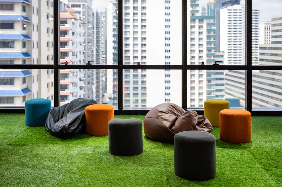 artificial grass landscaping applications in residential garden, commercial plaza and rooftop terraces