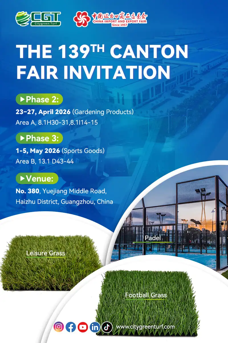 Join us at the Canton Fair to discover how CGT's football turf, leisure grass, and panoramic padel court systems can elevate your next project.
